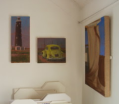 Thoughtful paintings on the subject of hand made work and worthwhile activity on the beach.